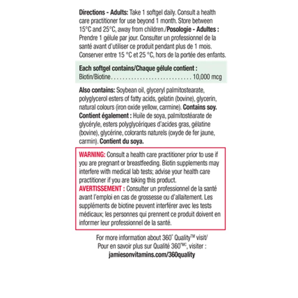 [자미에슨]비오틴 울트라 스트렝스 45정 [Jamieson] Biotin Ultra Strength 10,000 mg 45 Softgels