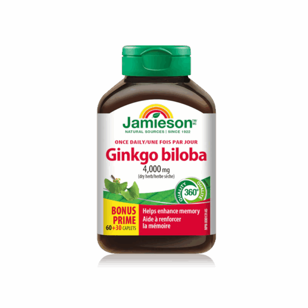 [자미에슨] 징코민/깅코빌로바 4000mg 60+30정 [Jamieson] Ginkgo Biloba 4000mg 60+30Caplets