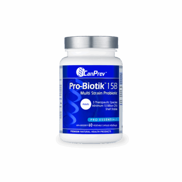 캔프르브 멀티스트레인 프로바이오틱 150억은 비피도박테리아(Bifidobacteria)와 락토바실리(Lactobacili)를 포함한 우리 소화기관 내에 자연적으로 발견할 수 있는 5가지 종류의 이로운 박테리아가 들어있습니다. 각 종류의 박테리아는 소화관 건강을 개선시키며 결과적으로 전반적인 건강을 챙길수 있는 최상의 레벨로 맞추어져 있습니다. 특히나 이 제품은 냉장보관이 불필요한 선반에 보관이 가능한 제품으로 어디서나 언제든지 복용이 가능합니다. 캔프르브 멀티 스트레인 프로바이오틱 150억은 제조당시 400억의 활동성 박테리아를 담고 있으며 유통기한에 다다랐을 때도 150억개의 균들을 포함하도록 보장되었습니다. 복용법: (성인) 식사와 함께 하루에 1-2정씩 복용하거나 전문이의 감독 아래 복용하세요. CanPrev’s Pro-Biotik™ 15B is a shelf-stable probiotic capsule formula containing five critical probiotic species naturally found in the human intestinal tract, including bifidobacteria and lactobacilli. Each species is represented at optimal levels to enhance the natural gut flora and provide a health benefit. Pro-Biotik™ 15B is completely shelf stable for ease of use anytime, anywhere - no refrigeration is required. At the time of manufacture, CanPrev’s ProbiotikTM 15B contains 40 billion CFU’s (colony forming units - a measure of friendly bacteria activity). By the time it reaches its expiry date it is still guaranteed to have an activity level of 15 billion CFU’s - now that’s impressive! Keep a bottle of ProbiotikTM 15B in your bag, knowing with confidence that you have a probiotic that works for you, wherever life takes you. Adults - Take 1 or 2 capsules per day with food or as directed by a healthcare practitioner.
