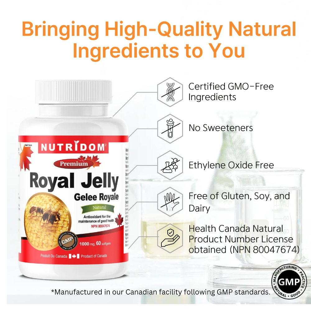 로얄 젤리의 장점 향상된 에너지, 건강한 모발과 피부, 젊어 보이는 외모, 강력한 면역 체계 및 스트레스 수준 감소는 로열 젤리의 많은 장점 중 일부입니다. 로얄 젤리는 건강과 에너지를 증진 시키며 또한 자유 라디칼로 인한 손상과 싸우는 항산화 성질을 가지고 있다고 여겨져 노화에서 암에 이르기까지 모든 것을 예방할 수있는 잠재력이 있음을 의미합니다. 지금까지 과학자들은 로열 젤리가 다음과 같은 점에서 유익하다고 믿고 있습니다.