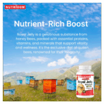 로얄 젤리는 B 복합 비타민 (비타민 B5와 B6 고농도 포함), 미네랄, 효소, 아미노산, 비타민 A, C, D와 E, 핵산 (RNA와 DNA 제조용), 아세틸 콜린이 풍부합니다.