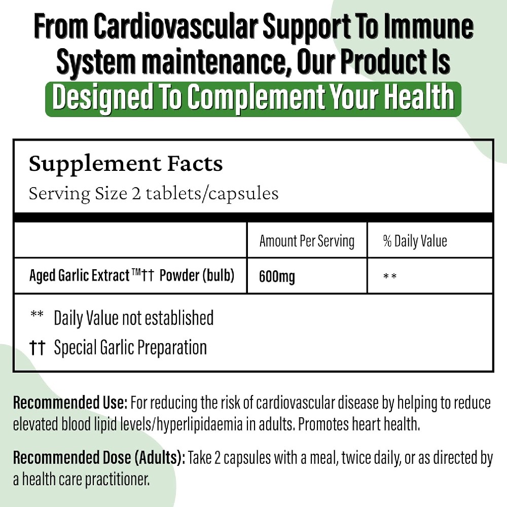Kyolic® Aged Garlic Extract ™ Formula 100의 삼키기 쉬운 정제 또는 캡슐에는 300mg의 Aged Garlic Extract ™ (Allium sativum) 구근이 들어 있습니다. 이 제품에는 인공 방부제, 색소, 향료 또는 밀, 효모, 설탕 또는 전분이 포함되어 있지 않습니다.