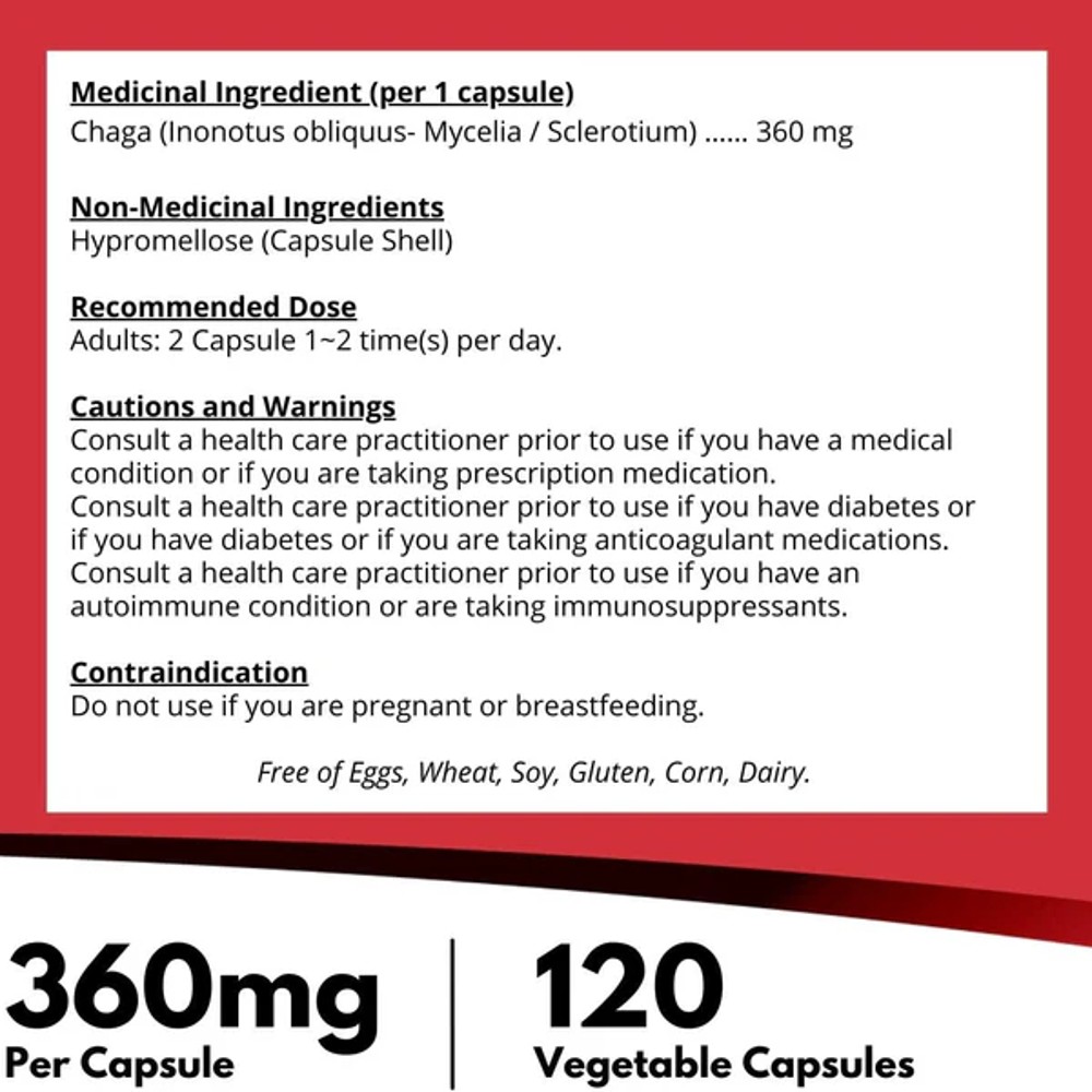 Chaga (Inonotus obliquus- Mycelia/ Sclerotium)……………………360 mg