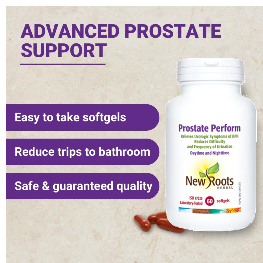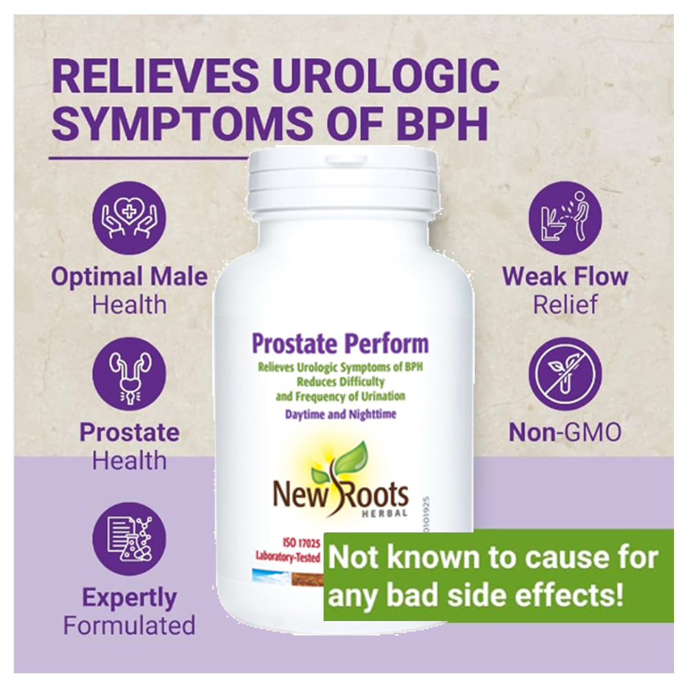 A maintenance regimen of New Roots Herbal’s Prostate Perform is a smart addition to your nutritional program. Our innovative formula acts as a proactive, one-stop supplement to help ensure optimal male health. Prostate Perform is a comprehensive formula that goes beyond only concerns for benign prostatic hyperplasia, offering total prostate support.