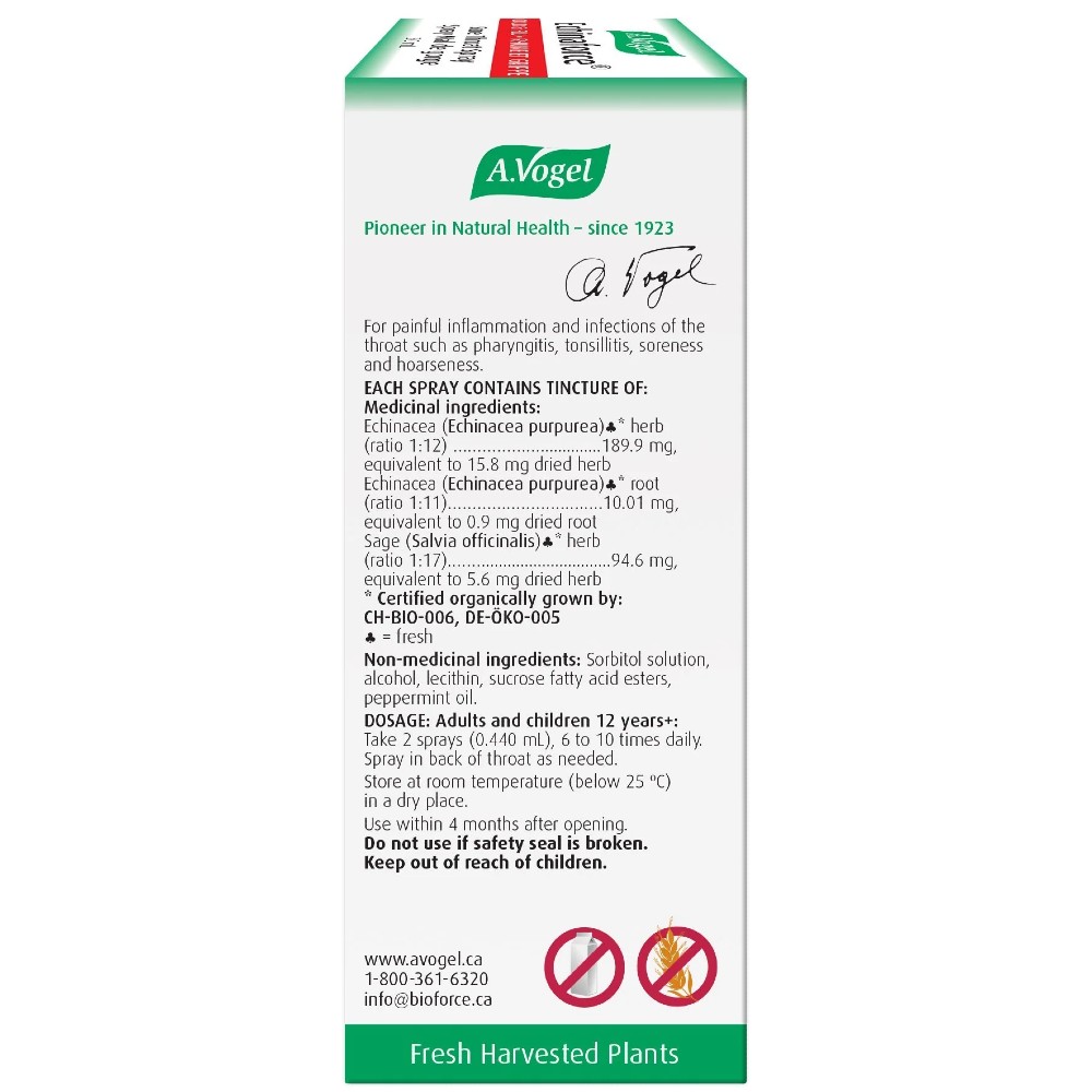 A.Vogel의 에키나포스 인후통 스프레이는 인후염, 편도선염, 통증, 쉰 목소리 등 목의 통증성 염증 및 감염 치료에 사용됩니다.
