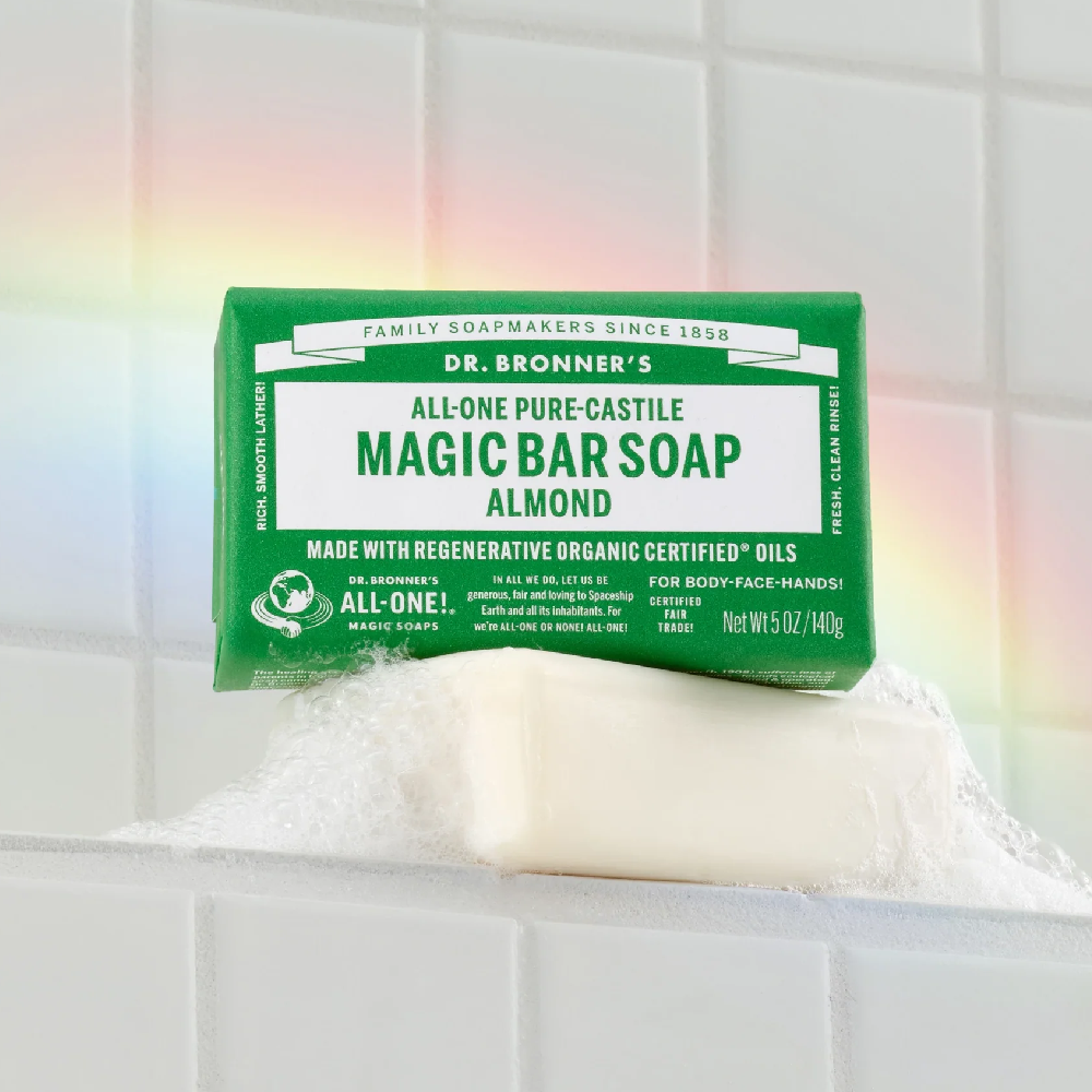 Dr Bronner’s cult classic soap bars are a must have in every bathroom. Known for their strong lather and high potency – Dr Bronner’s castile soap bars are great value for keeping you clean and fresh without chemicals or animal products. Wash with a clean conscience!