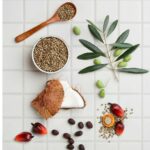 ** None remains after saponifying oils into soap and glycerin