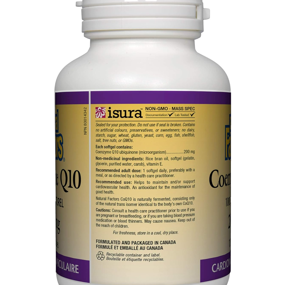 내추럴 팩터스 코엔자임 Q10 200mg은 100% 천연 발효 제품으로, 체내 CoQ10과 동일한 천연 트랜스 이성질체로만 구성되어 탁월한 효과를 제공합니다. 이 최고급 CoQ10은 미강유와 비타민 E를 베이스로 하여 흡수율을 높였습니다.